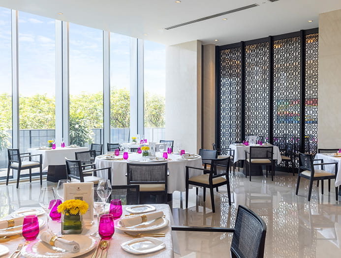 Ranked among the best 5 star hotels in Hyderabad, Trident, Hyderabad is just a short drive from some of the best places to visit in South India. Rooms and suites offer sweeping views over the city or Rock Heights Park, while the hotel’s restaurants serve everything from Italian favourites to regional delicacies inspired by the Nizams' kitchens. Unwind with a soothing spa session, enjoy great views from the 10th-floor outdoor swimming pool and relax at Trident, Hyderabad - one of the best places for a trip in South India with family and friends.