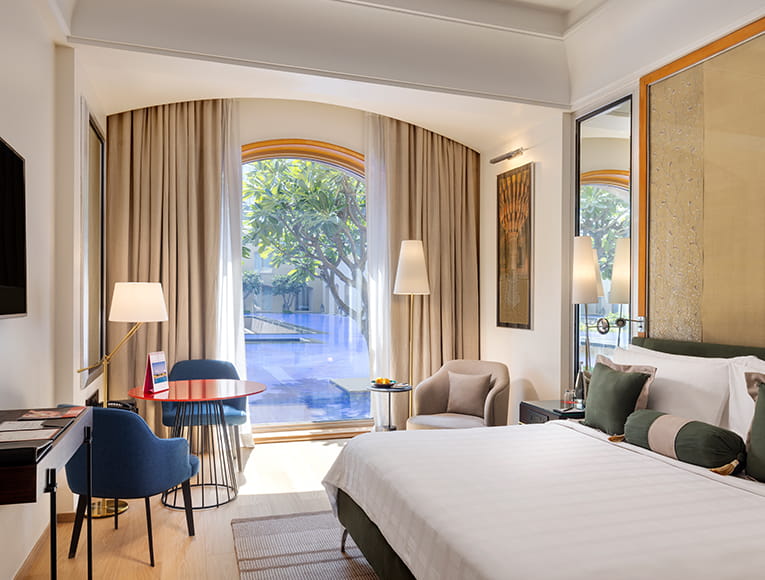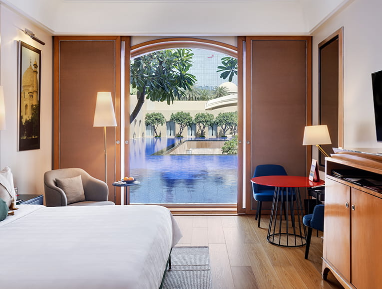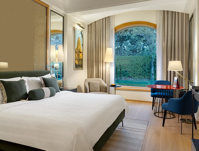 Trident Hotels has 7 suites and 129 rooms in Gurgaon with beautiful views of the gardens or pools. Accommodation is decorated in a muted, natural palette that compliments the outdoor scenery and lends a resort-like ambience to our rooms in Gurgaon. Artworks and artefacts lend additional charm. All accommodation has complimentary high-speed Internet for up to eight devices and 24-hour room service.